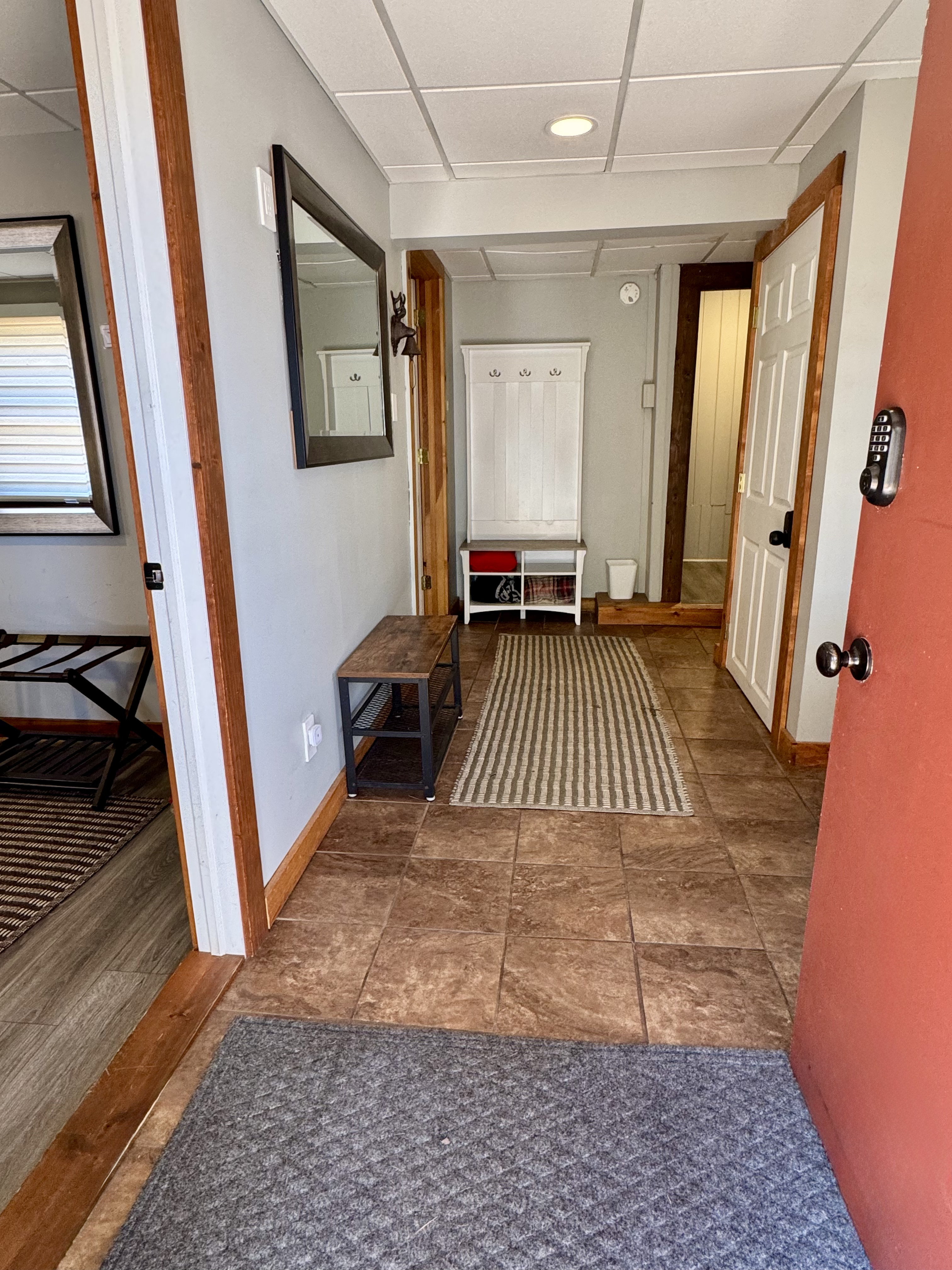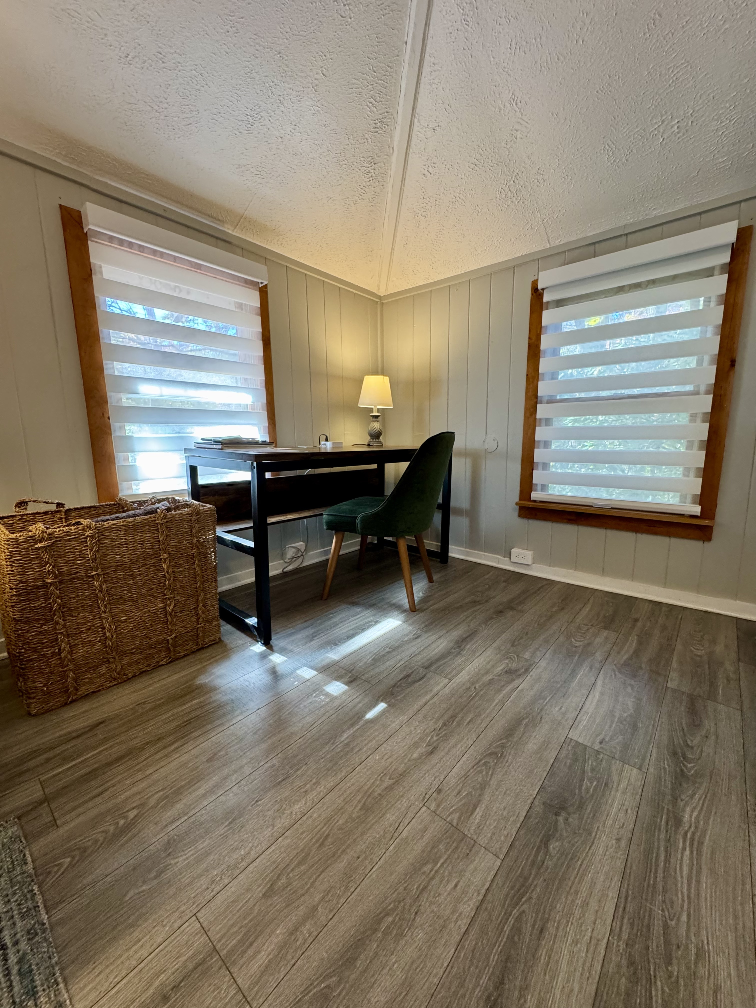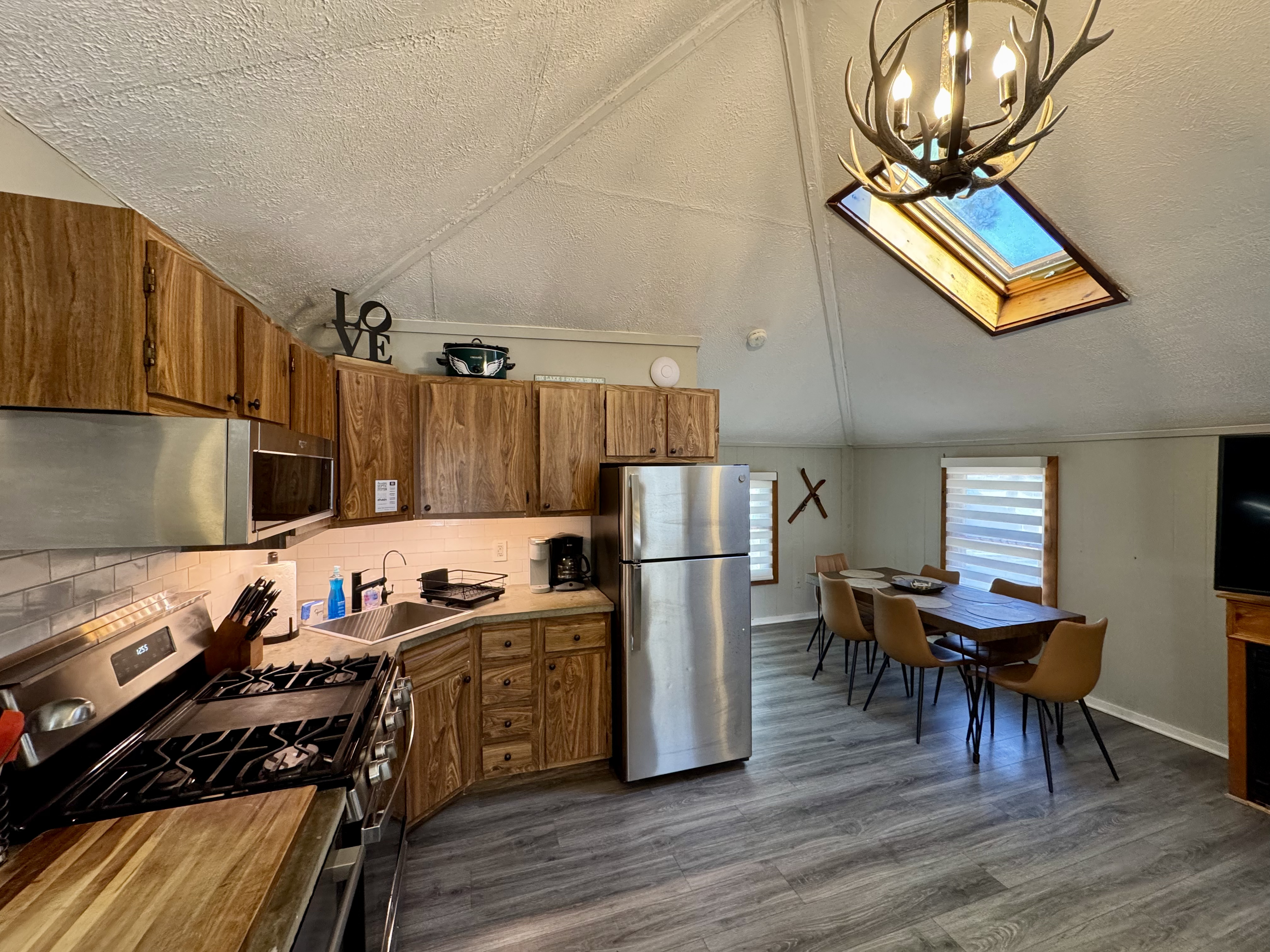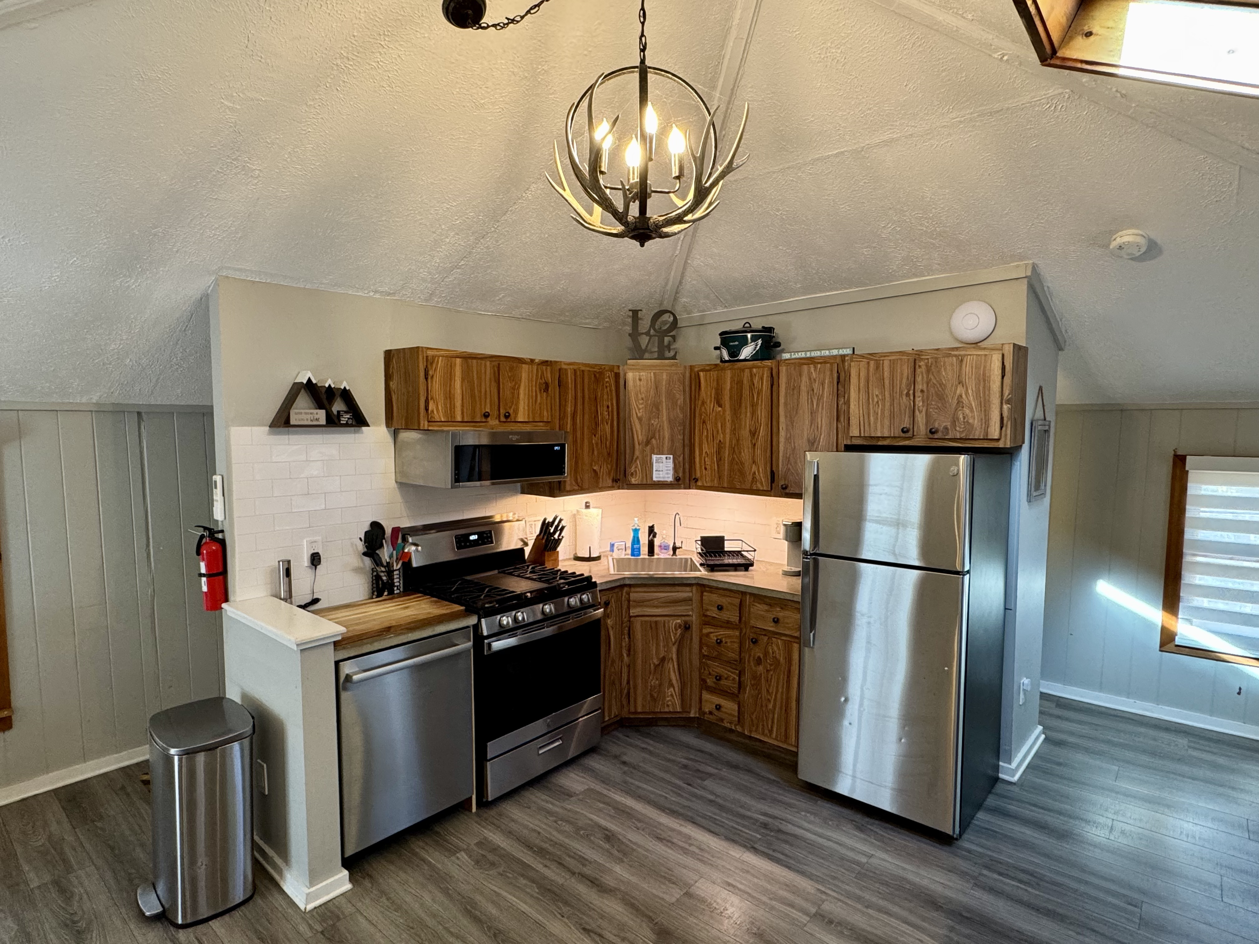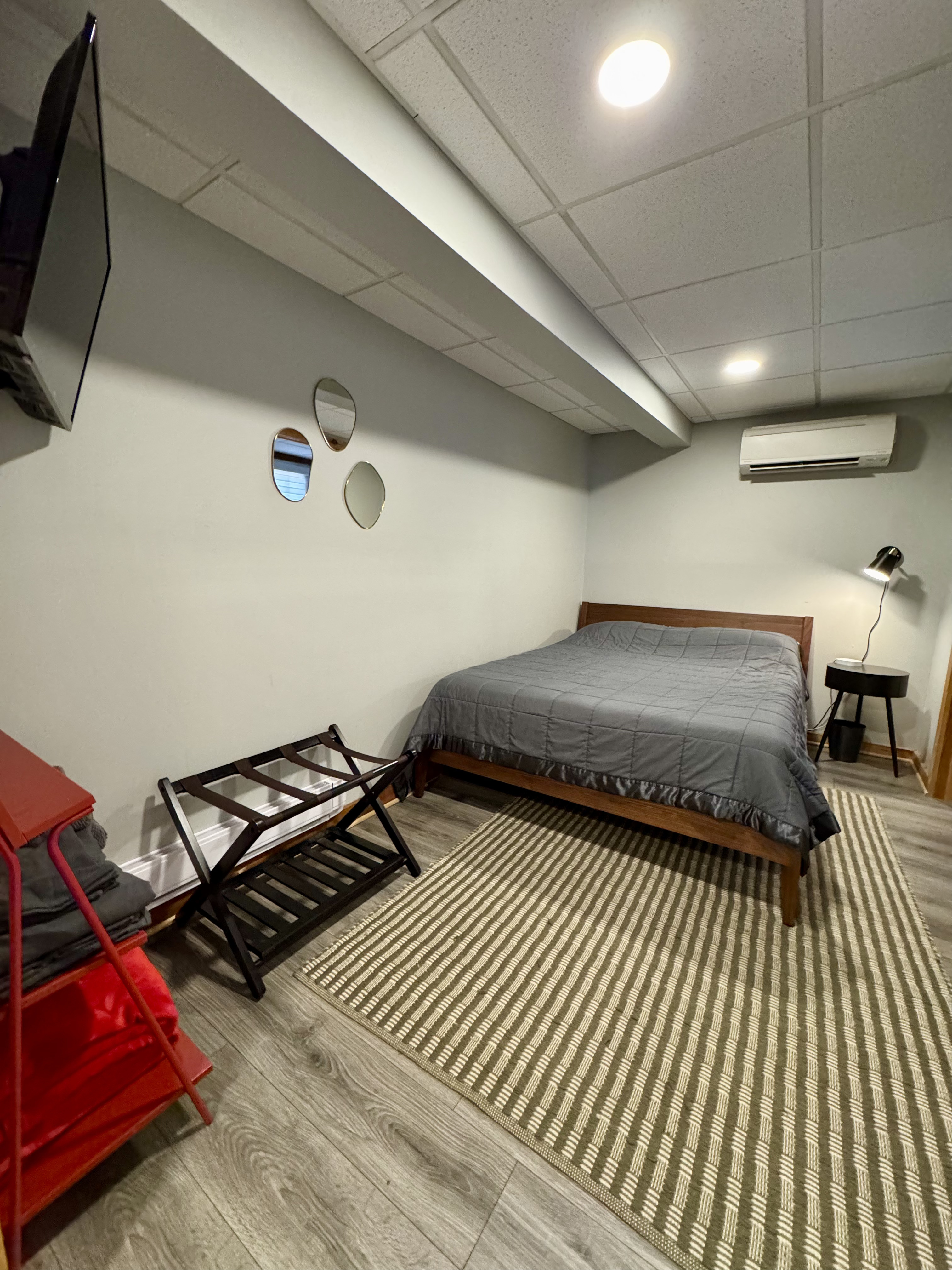 Amenities include new memory foam mattresses in both bedrooms located on the first floor, central AC and a new kitchen and bathroom in 2021. The upstairs of the home includes the kitchen, dining and living room area, a gas fireplace and bathroom.