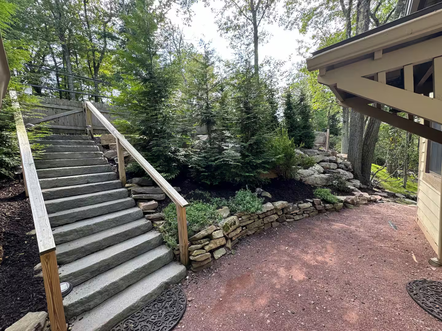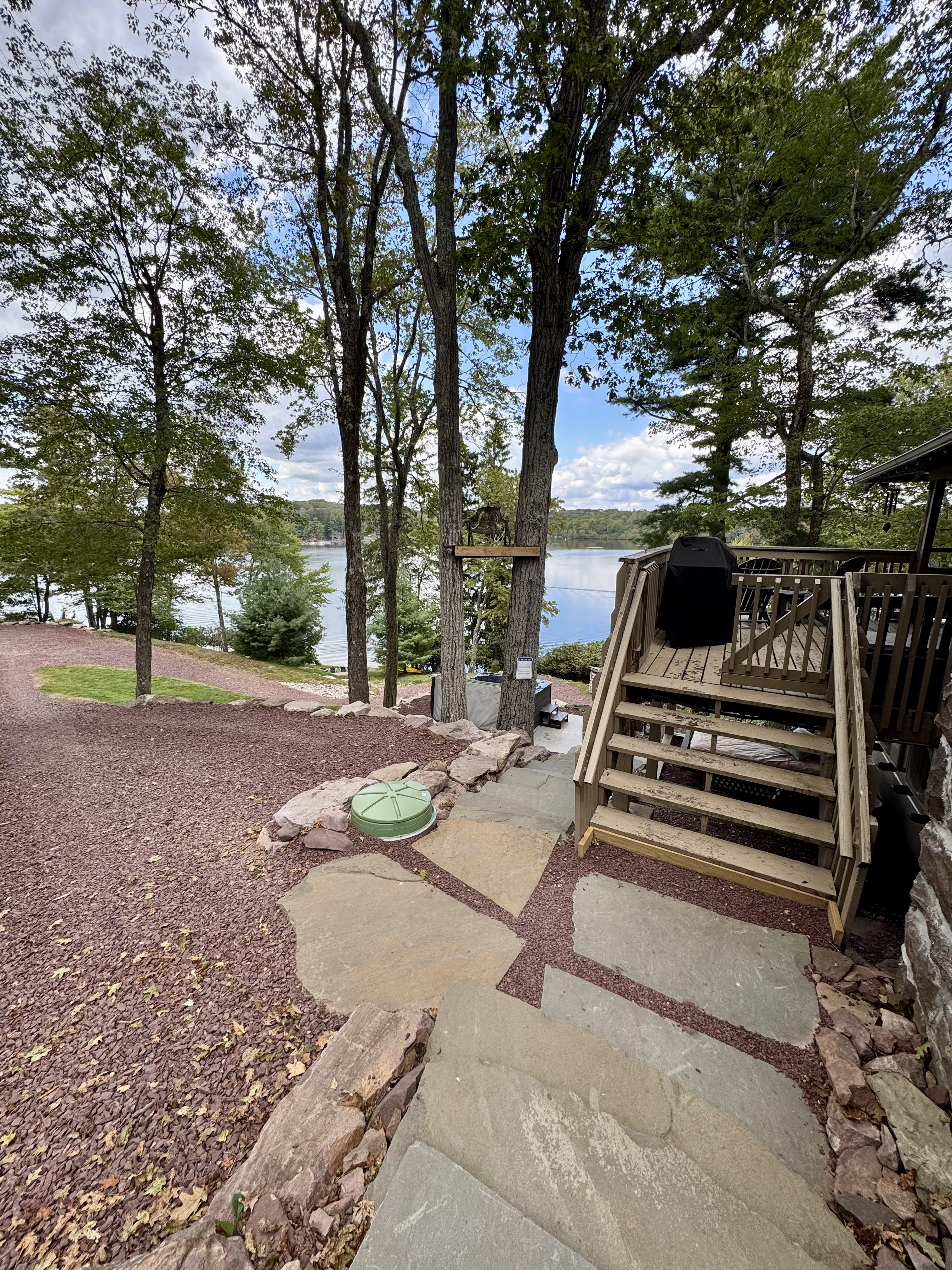 We are located at the highest point overlooking the lake, providing stunning views. We are also on one of the most private lake front properties on Lake Harmony - enjoy the privacy without having neighbors right next to you.