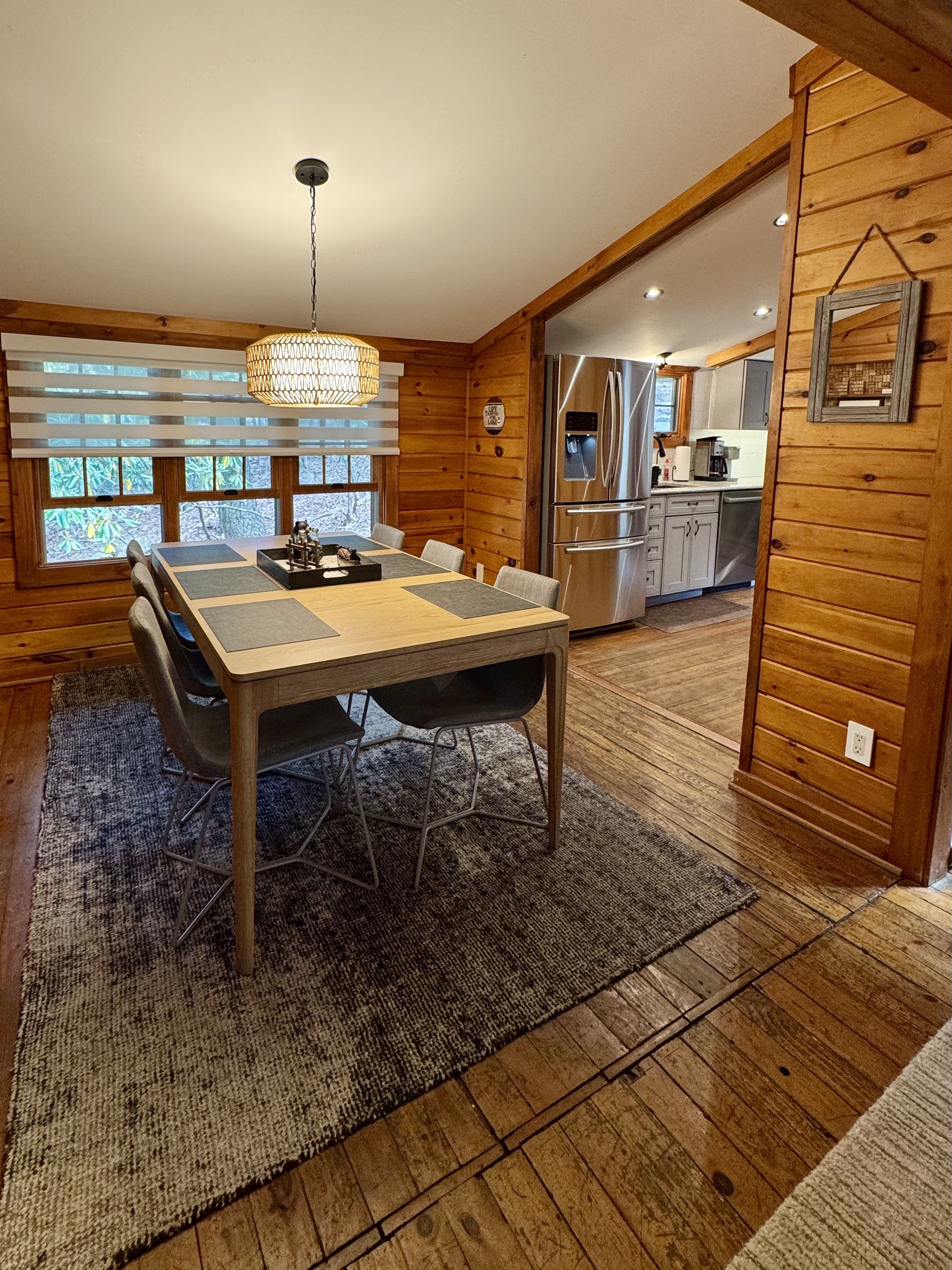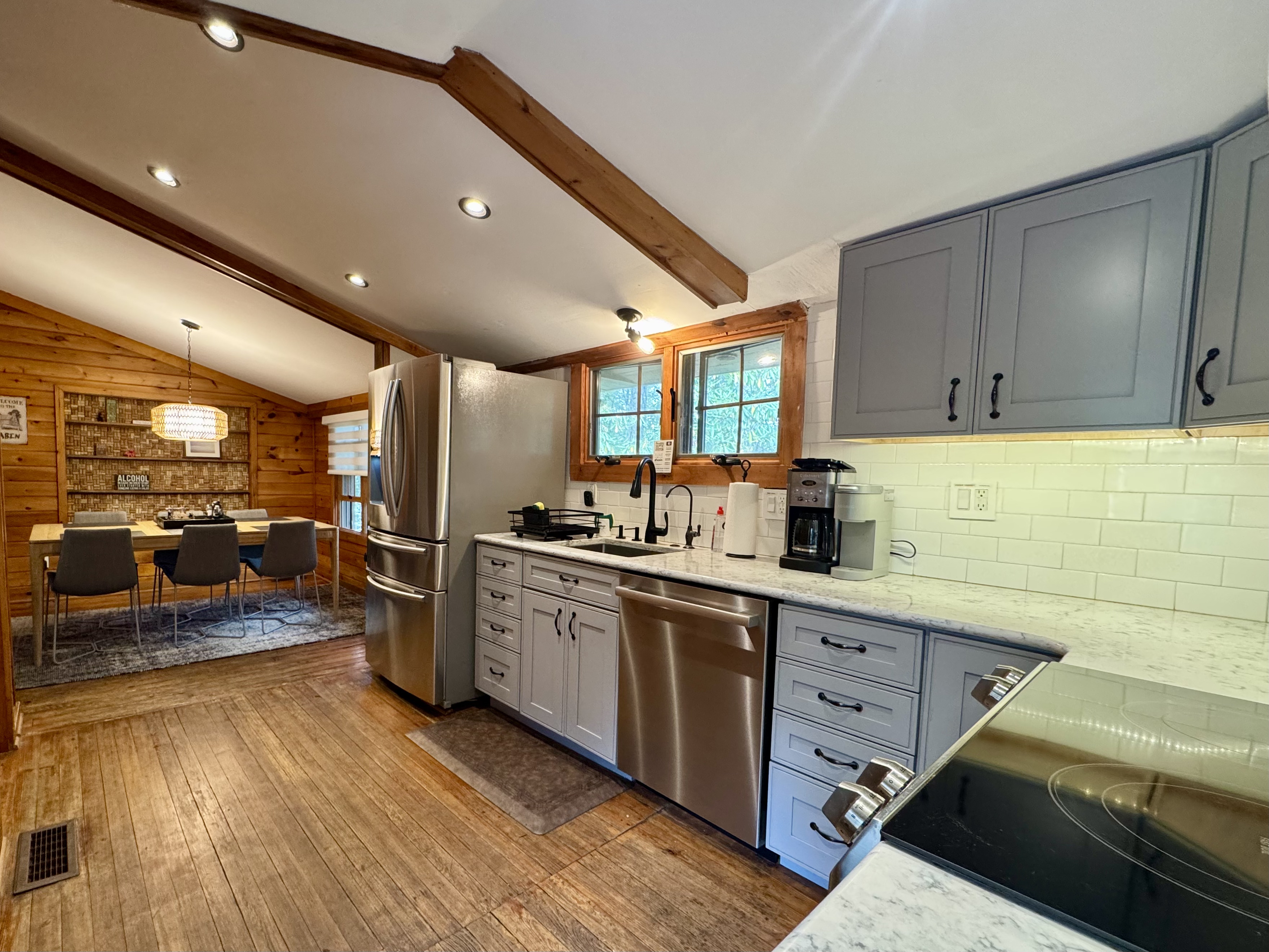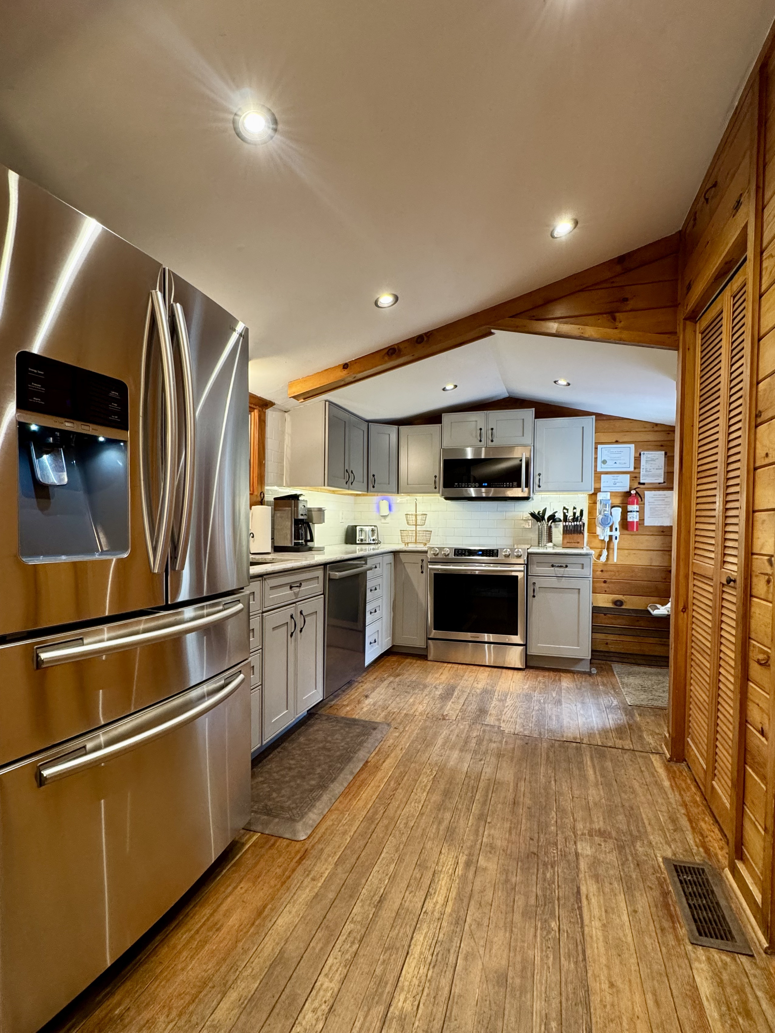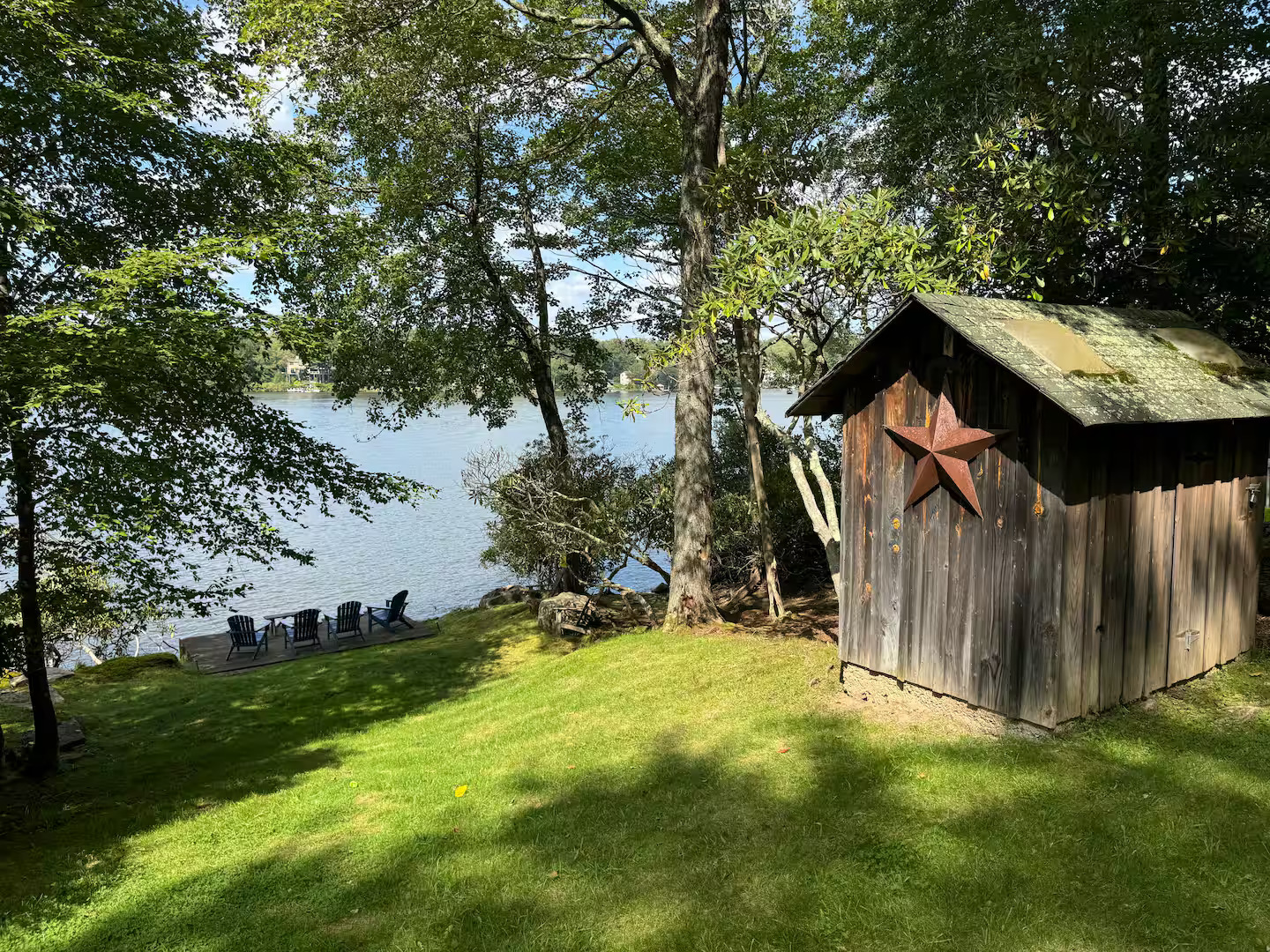 Plenty of places to relax, including three private docks, a large hammock, two fire pits, or a large covered deck overlooking the lake. Property includes space for outdoor games and access to kayaks and stand up paddle board for the summer season. Or warm up by the large stone fireplace with wood burning insert on cool or winter evenings. Enjoy dinner inside by our wine cork wall, or outside overlooking the lake. Amenities include new memory foam mattresses in both bedrooms, central AC and a new kitchen and bathrooms in 2019.
